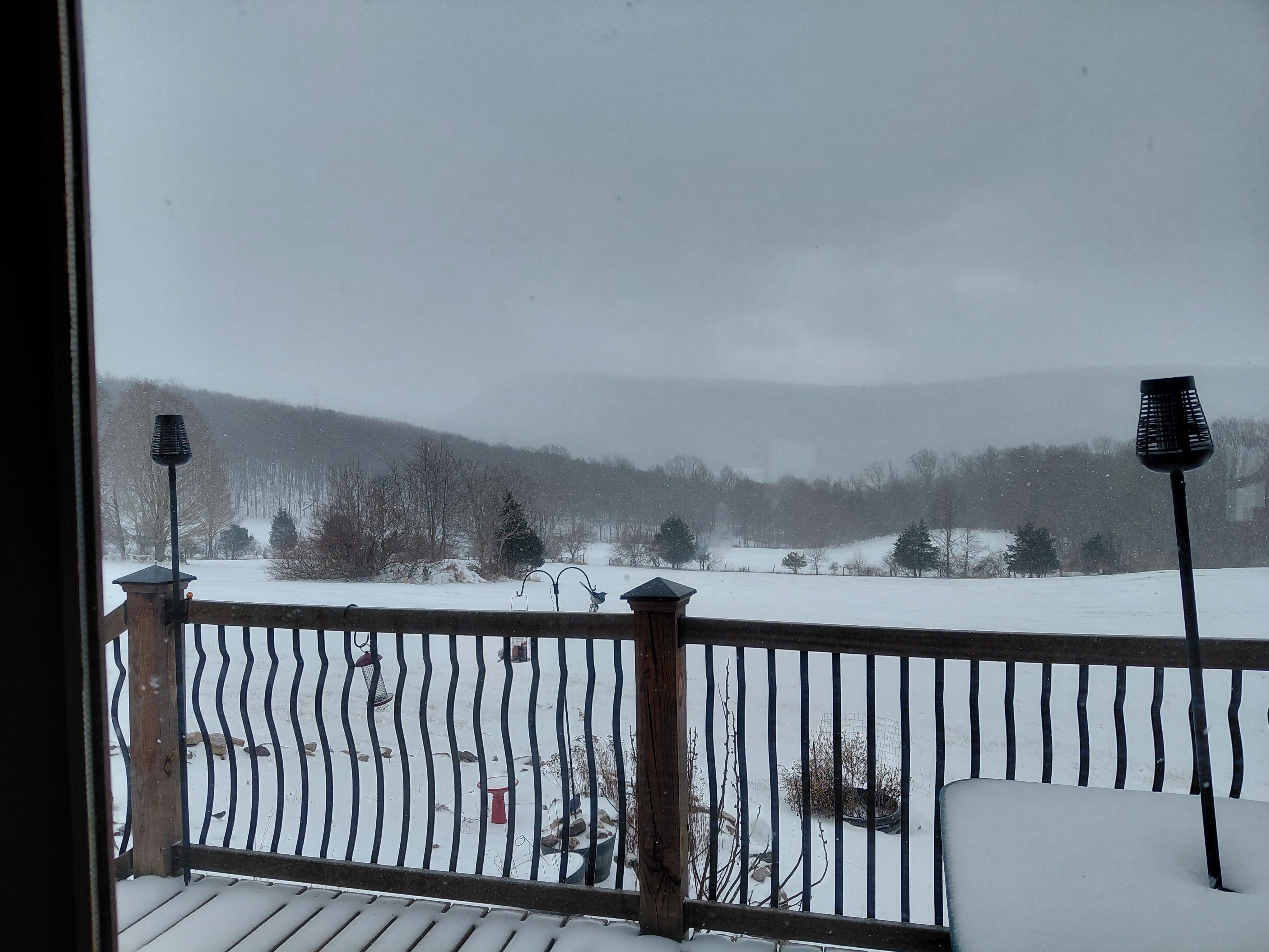 We are in one of the eastern states that is in the path of the winter storm marching across the south. Far enough north that we will get snow followed by freezing rain. This morning’s prediction is 8 to 12 inches of snow followed by .25+ inches of ice. This is enough to cause power outages in our rural area where most of the above ground transmission lines run through wooded areas. An ice storm a number of years ago, took our power for 6 days and without power, we are also without water and our stove is electric. At that time we had two dogs and couldn’t just leave them to go to a hotel once the roads were clear enough to get out. We live about a half mile from a paved road, all uphill. This snow and ice event is supposed to be followed by a series of days where we will see single digit to very low double digit temperatures and even some negative temperatures at night, so melt off anytime soon is remote at best.