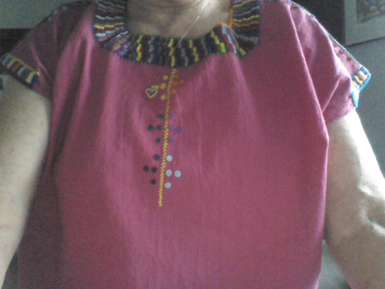 It has been a wonderful month long visit with our grandson and seeing our son again. As a gift from his stay in Mexico, he brought me this beautiful blouse, hand made by the indigenous Mayan women in the region in which he stayed.
