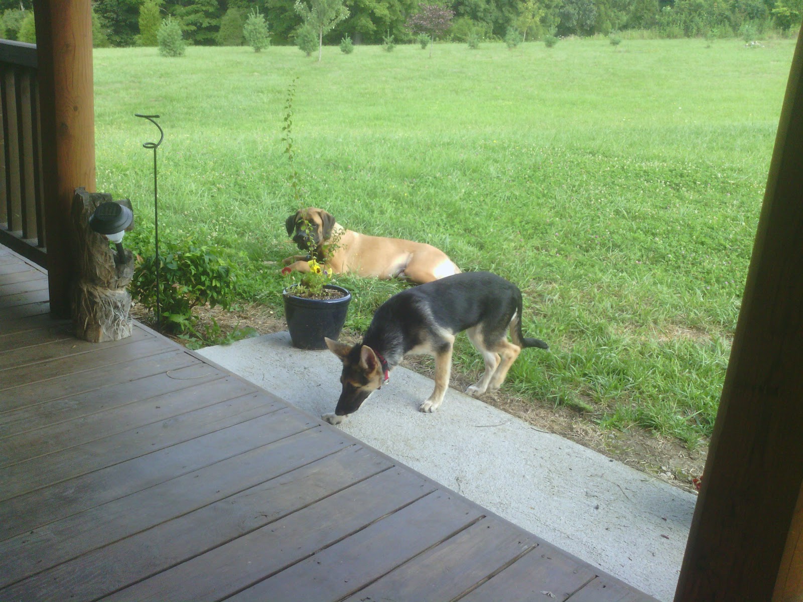 The pups are chasing each other around the yard that again needs to be mowed. Many of the farmers here are cutting a second mowing of hay already. Last night in the relative cool before dark, I attacked the garden and compost area with the weedwacker and can now at least walk the paths and see the beds. I still need to weed the beds and get some fall plantings in along with cover crops for the beds that are done for the season. The tomatoes are producing copious quantities, some being frozen whole, some cooked into pasta sauce while there is fresh basil and oregano and homegrown onions and it too is being frozen. There are enough jalapenos to can a few and make fresh salsa for snacking and saucing.