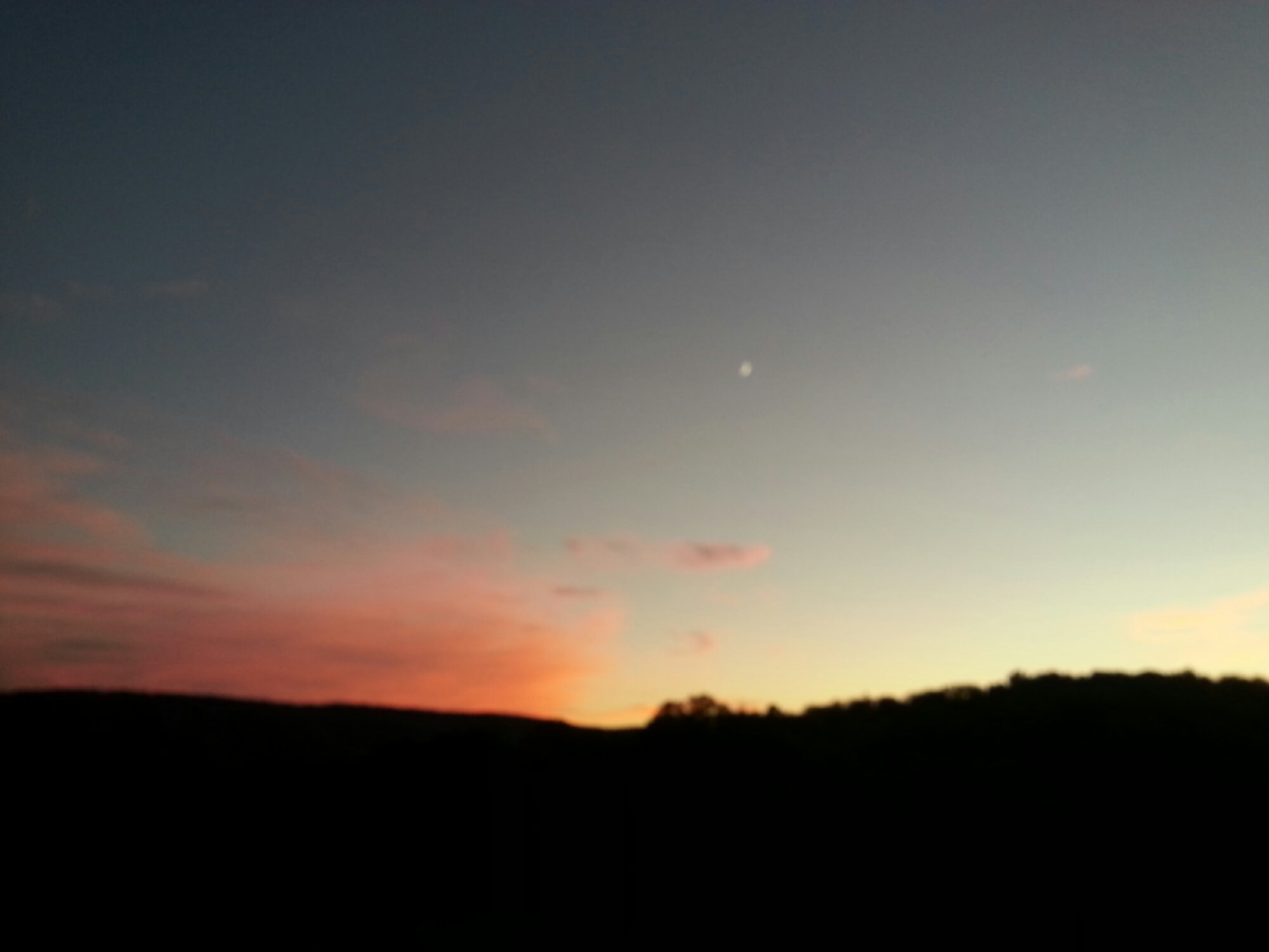 Peach sky, crescent moon, crisp air.