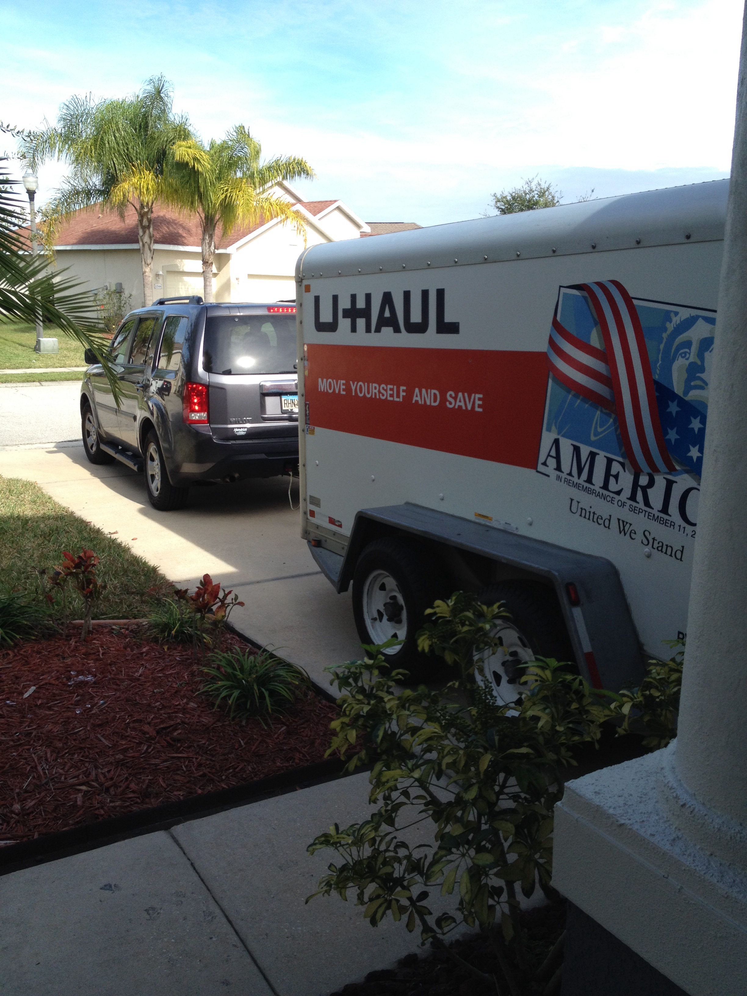 Last Wednesday, I flew to Florida and Thursday and Friday morning, daughter and I finished packing the children’s books, games, indoor and outdoor toys and clothes, along with her clothes, some linens and other needs from their house. Thursday, she and her husband met with the Realtor that is listing their house for sale and signed the paperwork to get the house on the market early this week. On Friday noon, we picked up the trailer and began loading it, putting the children’s dressers, two bookcases, toy bin shelving and daughter’s desk. Once her husband got home from work, he helped us play Tetris with the boxes and items like bicycles, scooters, and outdoor toys that would not go into boxes. Everything stacked up, tied down and balanced.