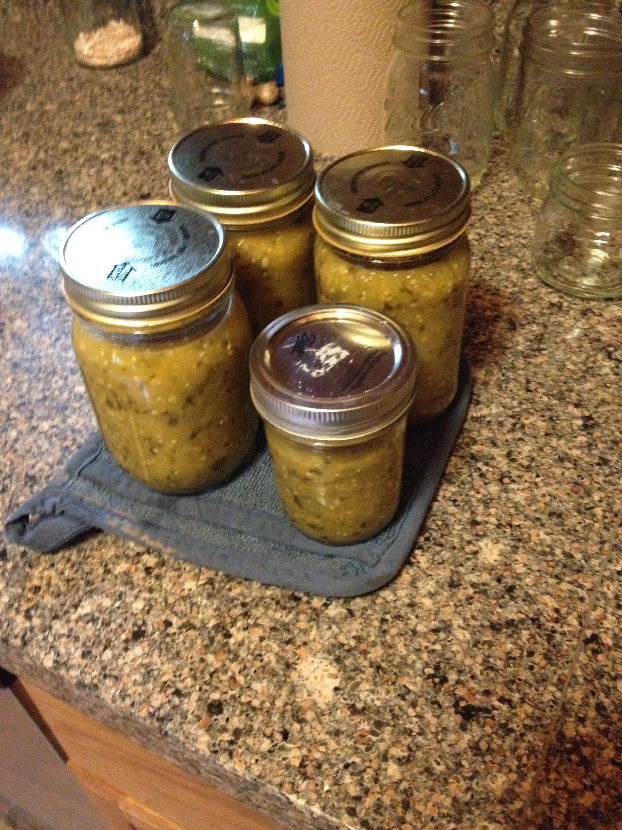 There were only two half pints of the XXXX Salsa left on the shelf, but the Tomatillos and Habeneros were in the freezer from when I gave up on canning in the fall, so 3 1/2 pints were made this morning. They aren’t sealed in the canner, but I’m sure they will be eaten long before they go bad.