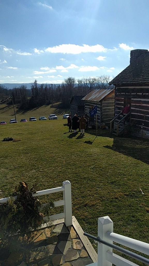 Wilderness Road Regional Museum celebrated Olde Christmas today with the traditional King’s cake and the burning of the greens. There was story time at one end of the museum and my weaver friend, Kim and I at the other end. There were cookies, hot tea, and craft beer available. A roving fiddler to provide music. A Colonial toy set up by another friend, Mary.