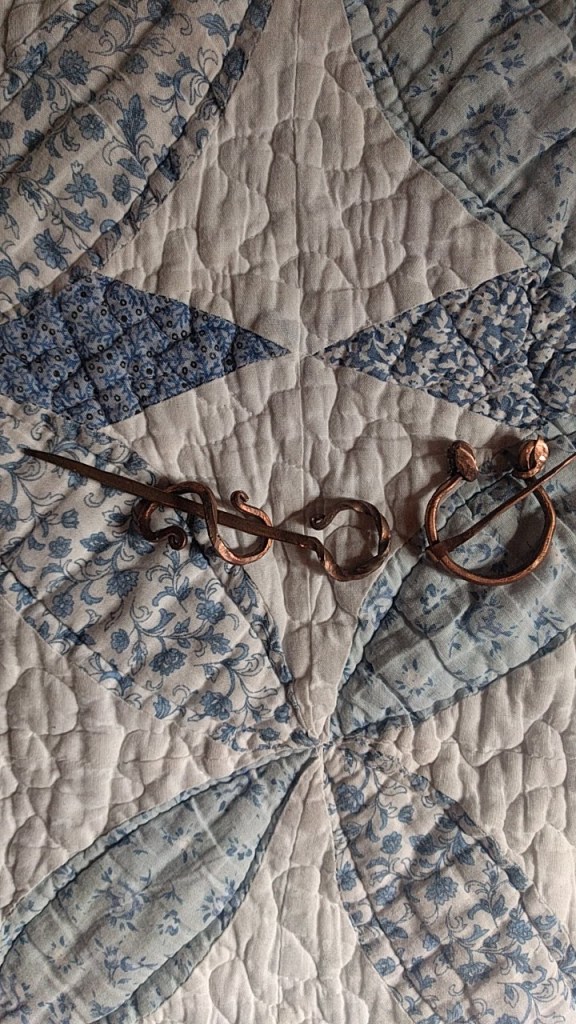 He made the tongs to match the older tools. And he makes both hammer in and screw in hooks, hanging hooks, shawl and hair pins, and other metal work as well as teaching blacksmithing locally. If you need anything, you can seek him out on his Facebook page JJL Forge.