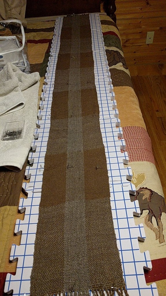 After the fringe was twisted, this photo was taken before it was soaked and laid out to block and dry overnight.