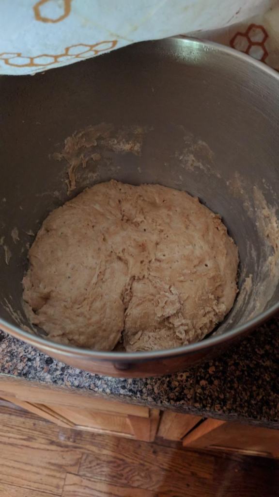 Right after lunch, I got some bread started. The last loaf in the freezer is almost gone and since we are eating in 100% of the time, more will soon be needed.