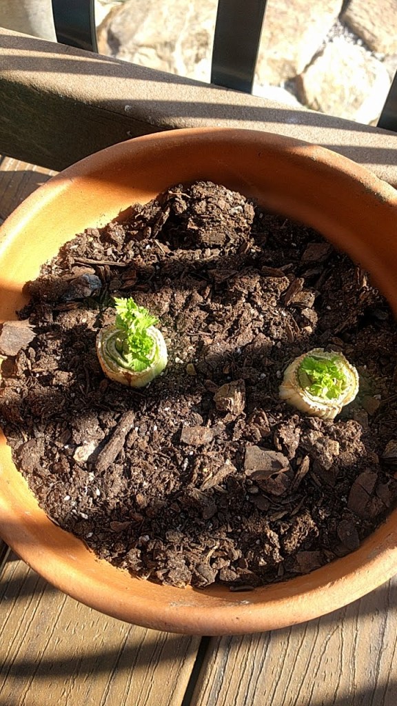 I wish my garden area was that neat. My celery experiment is growing nicely. I had two celery hearts that were getting soft, so I chopped the celery and froze it for cooking and stuck the ends in a shallow dish of water in a sunny window for about a week or 10 days. When the centers were showing signs of growth, I stuck the two in a clay pot of potting soil and put them in the sun. It will be interesting to see the end result.
