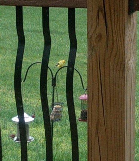 I have been watching this little guy turn from his winter brown to spring gold. He has almost finished his molt. I love watching the little flocks of them in their roller coaster flight across the fields.