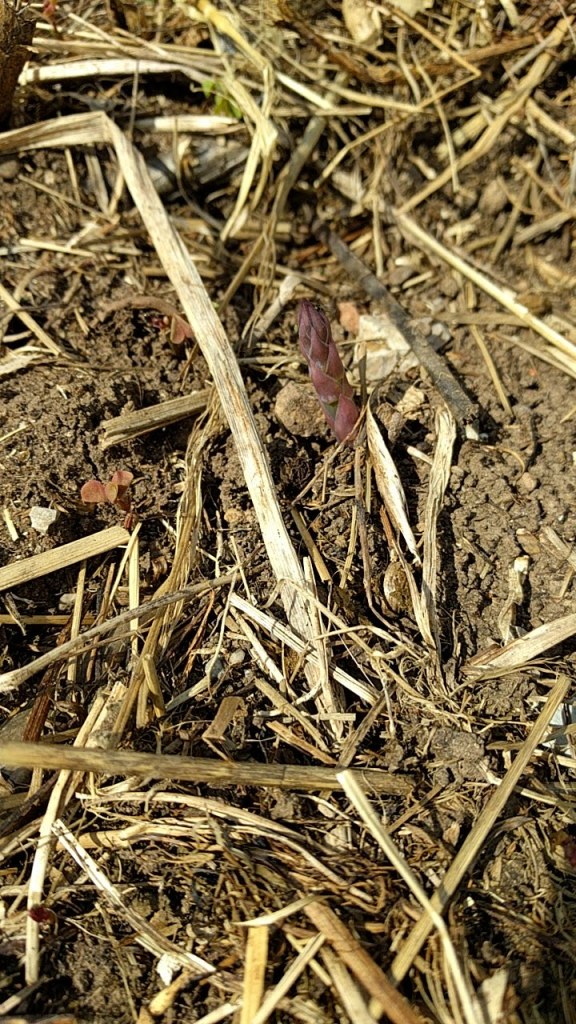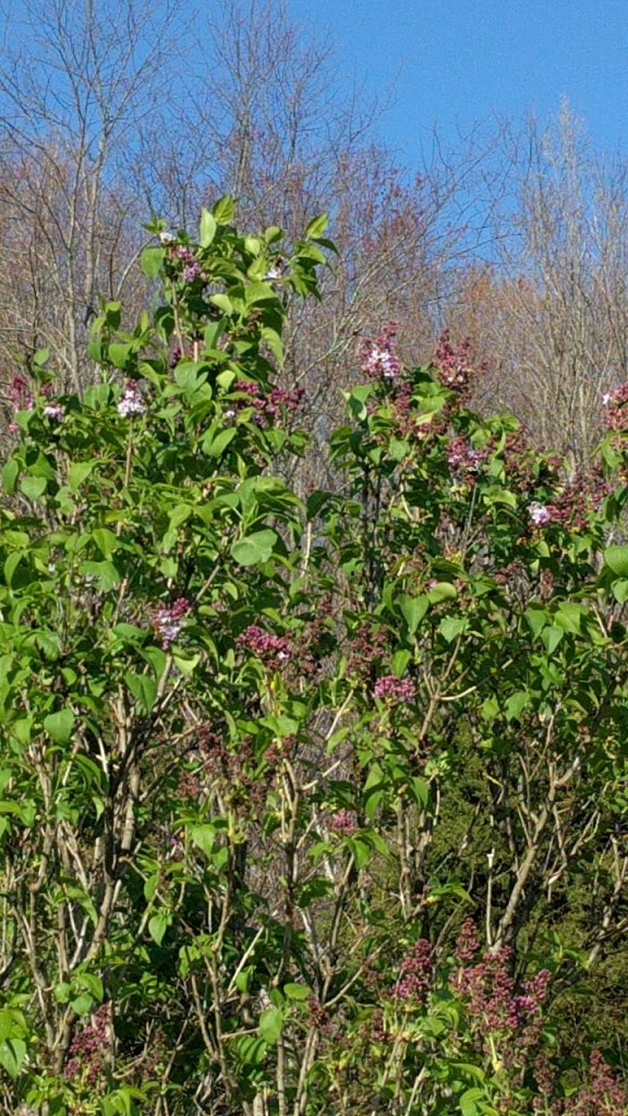 The grapevine I pruned sharply and got on a proper arbor has tiny buds; the peonies have flower buds, one has only 2, the other many; lilacs blooming; asparagus tips. The peas almost need trellising, there are a few tiny spinach plants. New fresh food, YAY.