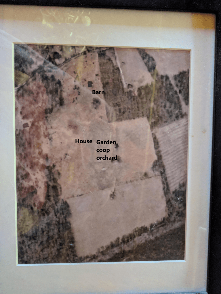 Since this aerial photo was taken by our Realtor after we bought our farm, we have built the house, gardens, bought a coop and fenced a run, planted an orchard to the east of the house, and many pines, maples, and redbuds between the barn and to the northwest of the house. Our farm is the L shaped series of hayfields containing the buildings and down to a line in the woods to the south. This is 30 acres, for the sports minded reader, about 27 American football fields. I mow about 5 acres (about 4.5 football fields) as our lawn, from south of the barn to below the septic field and from the orchard to 25 feet or so to the west of the house. The area above the barn is too rocky to mow or hay and without animals grazing on it, trees have volunteered in the 15 years we have lived here. The rest of our farm is hayfields. We have woods and cattle fields as neighbors to the west, hayfields to the east, woods to the south. This morning before it got too hot and muggy, I mowed the west and south sides of the house and around the orchard, garden, and chicken pen. It takes about 3 hours total to do the lawn on the riding mower. Another couple of hours to clean up with the line trimmer which I still haven’t done.