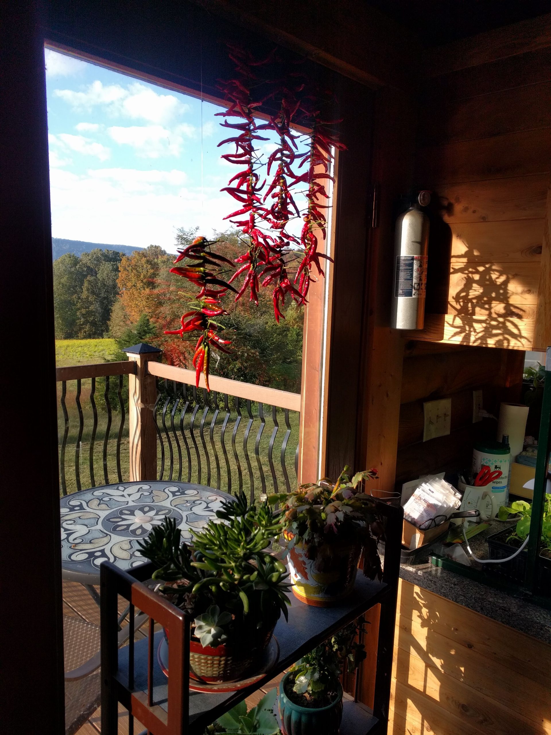 On a brighter note, since I don’t have an electric dehydrator to dry herbs and peppers, this is my solar dehydrator.