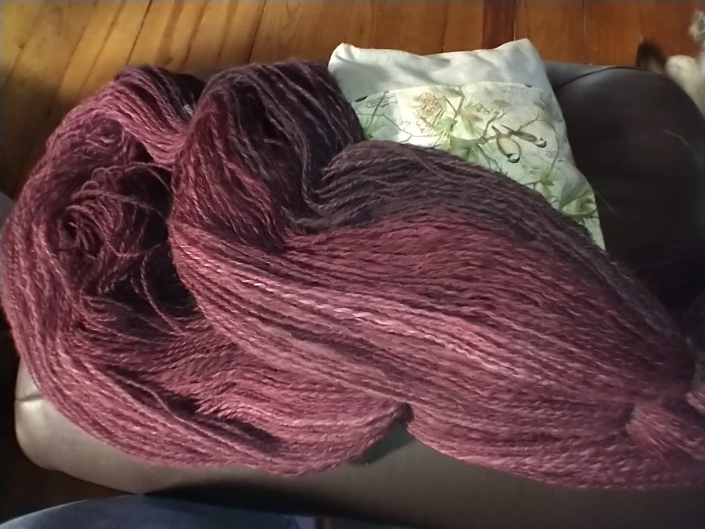 I finished plying and skeining the Christmas gift wool. It ended up 492 yards of 18 WPI yarn. I’m still trying to pick a pattern for it and toying with spinning a complementary color to use with it to make a generous wrap. It is a pretty, subtle gradient and very soft.