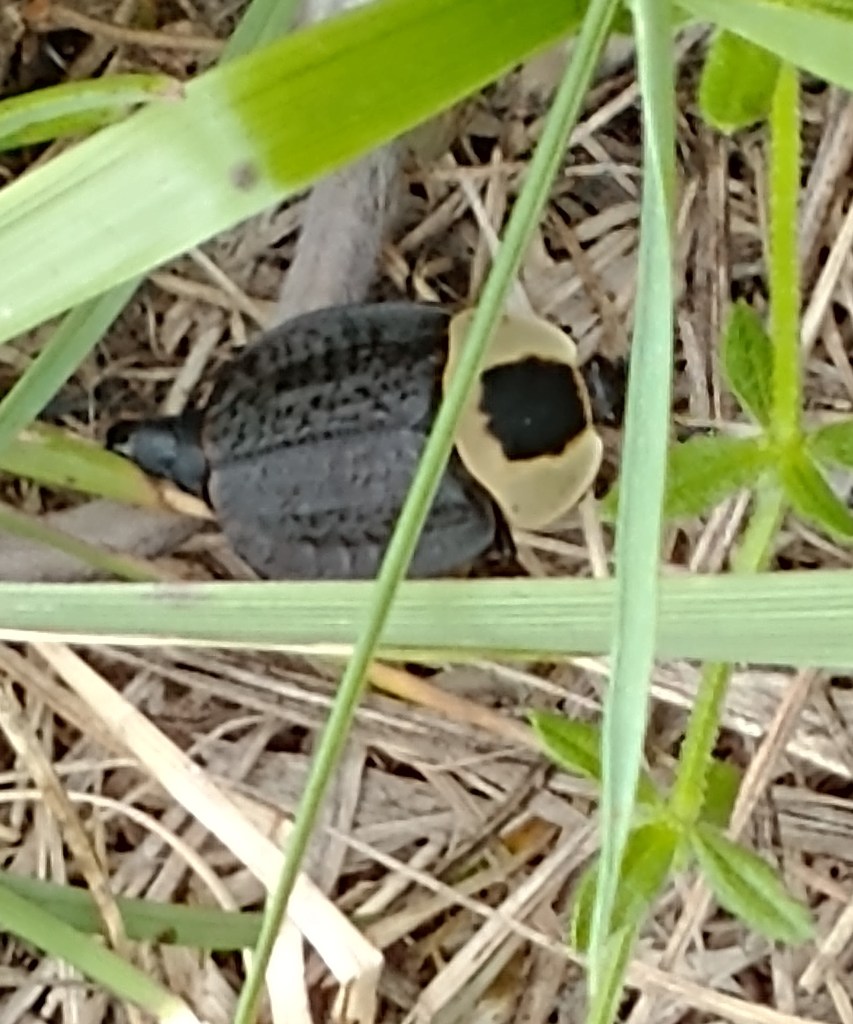 Yesterday, a mouse was caught in the house and tossed out into the tall grass on the edge of the upper hay field. It is on the path over to the coop. Seeing activity there, a closer examination showed American Carion Beetles. I had never seen them before. There are quite an interesting looking bug.