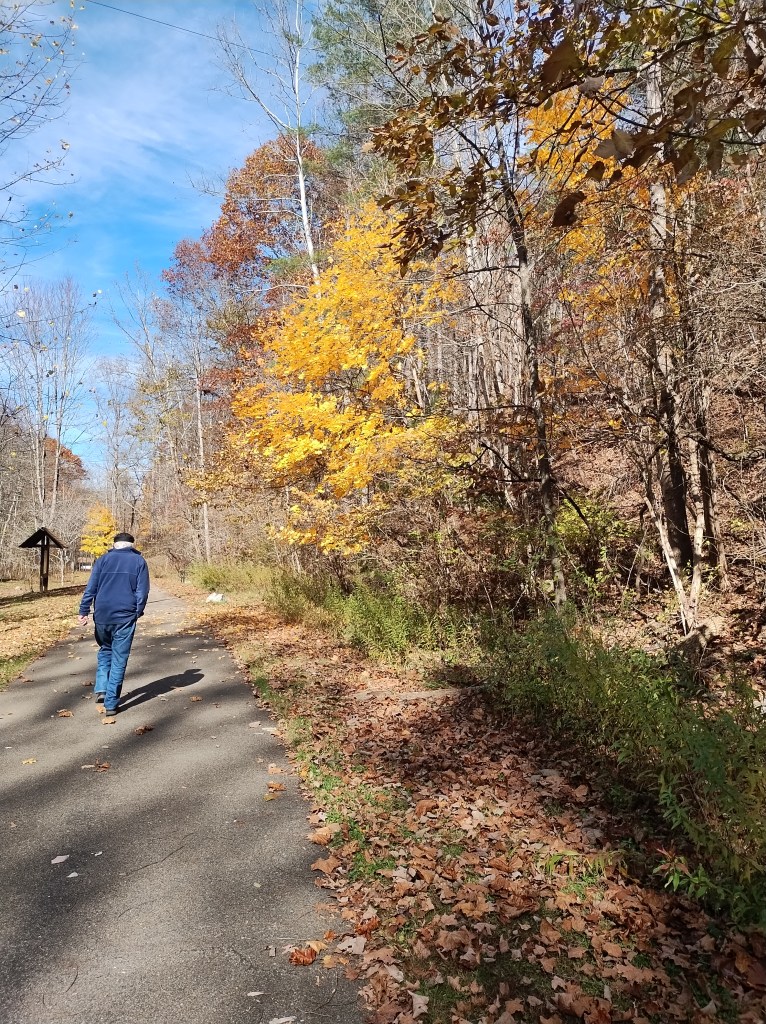 Most days, we stay closer to home walking sections of a rails to trails paved path. The original terminus begins at the town library and traverses about 2 1/2 miles to where it connects up on the other side of the main highway to continue in two directions for several miles each. If you choose to go right, it eventually ends up at Brown’s Farm, several miles away,now a park for the county. If you choose to go left, it continues for another 5 miles to the recreation center of the next town. We often park along that section near the old Coal Miner’s Park, but that section is currently closed until March for repair of 3 bridges.