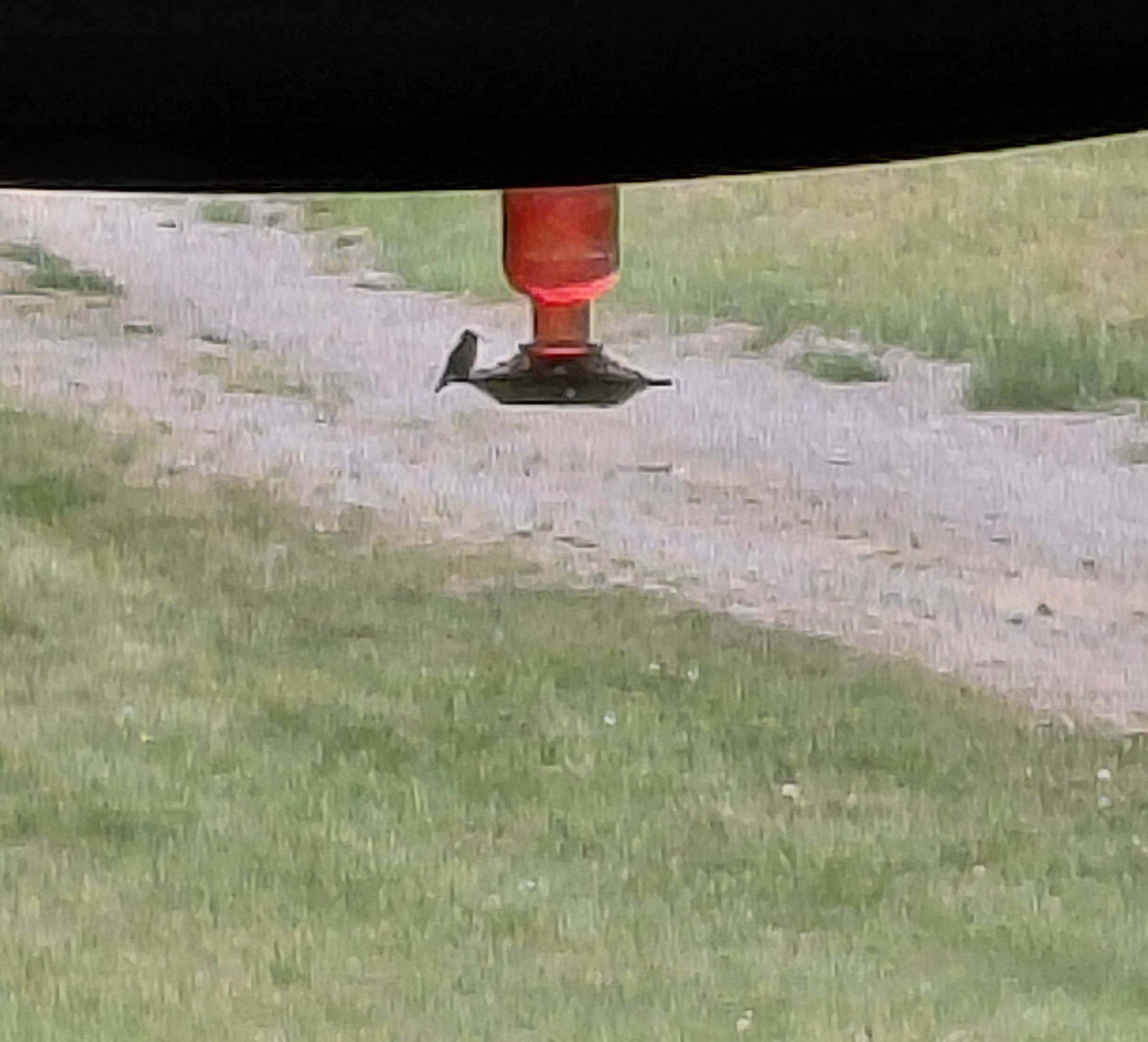 And today, finally a Ruby throated Hummingbird visited the feeder that was hung about 10 days ago. It has been dumped and refilled once to keep the sugar syrup fresh. Soon they will be fighting for it as more appear and a second feeder will be hung.
