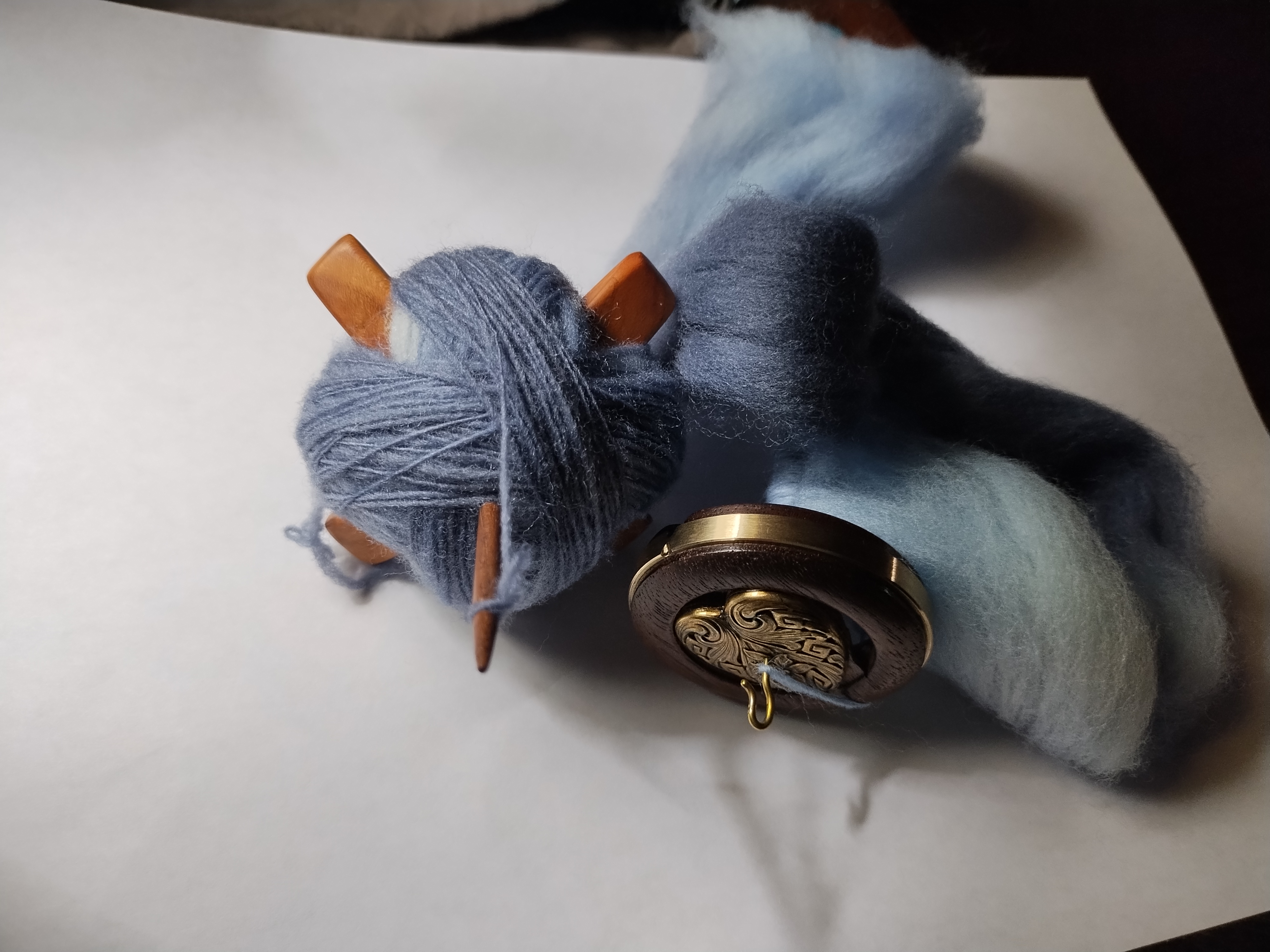 The Jenkins spindle group to which I belong on social media holds a fun scavenger hunt each year during Tour de France, called Tour de Fleece. Many groups hold versions of Tour de Fleece, many with challenges on who or what team can spin the most, but our version is more laid back and more fun. Each day, we are given an object to find and photograph with our spindle in progress on a spin. Each day the spindle needs to have more spun or plyed fiber on it than the day before. I have several small Jenkins Turkish spindles that will be used during this period. There are prizes donated by members of the group if you find enough of the items and post your photo within the 24 hour window. This year, I am doing it just for the fun of it and have asked not to be included in the prize drawing if I find enough items and follow through with the daily posting.