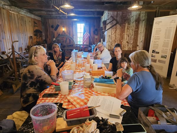 Last Wednesday evening, I trekked over to the museum to teach an old skill. No costume required for this event. We set up 4 stations for 4 ladies + 1 second grader accompanying her Mom and they learned to make basic lard and lye soap. We used a mix of old school and modern skills and equipment so we weren’t there all night stirring the mix. Of course they were given some history of soap and soap making and why we now use a lye calculator and a superfatted recipe to be sure we end up with a body friendly product. I put together kits of a small heat safe plastic bucket, two rigid plastic stadium cups, a spatula, and a silicone loaf pan for each participant that they keep at the end of the session, along with the a three page history, instructions, and two recipes; one for the lard and lye and one for a vegan soap with Shea butter, Coconut Oil, and Olive Oil, and of course, their mold of soap. We “cheat” by stirring with an immersion blender to speed the process up to keep our session within a 90 minute window. As I dug out some of my equipment and essential oils to scent their individual batches of soap, it seemed a good time to go ahead and make soap for 3 friends and our household.