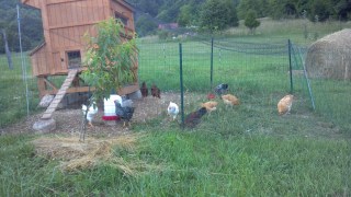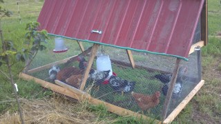 the area is too big for the 4 X 8′ chicken tractor to be moved enough to keep it mowed for us.