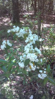 The mountain laurel is blooming in Pandapas Pond park, hubby’s knee has healed enough for the pups to get a walk and they were happy about it. The hayfields are mowed, the hay baled, making the property look neat for a month or so, the garden is thriving, and I added two tomato plants from the farmer’s market to replace two that didn’t survive. The pullets and cockrells are growing, getting close to time to start seeing eggs and time to harvest the rest of the culls. We have had a great week, survived the summer storm with only a few hours without power, the start of produce from the garden and good weather for the most part.