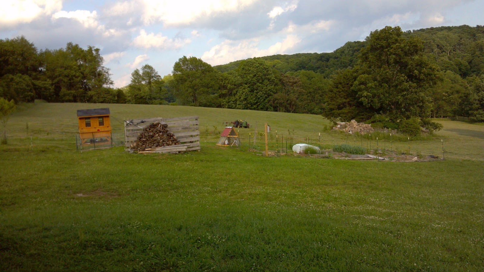 Since I planted the orchard and put electric fence around it, the area that houses the chicken coop, chicken tractor, garden, compost and orchard has gotten very difficult to maintain. The tractor doesn’t turn well enough with the brush hog attached to mow in there without taking out chicken pens or electric fence wire posts, so it tends to get very, very tall. Today I ended up with several ticks just going over to feed and water the chickens, so I tackled the area that is more than 100 feet by 100 feet square with the huge weed whacker and while I had it out, I cleared a 7 foot band around the house so I can mow tomorrow with the tractor. A busy, tiring day, but productive. -