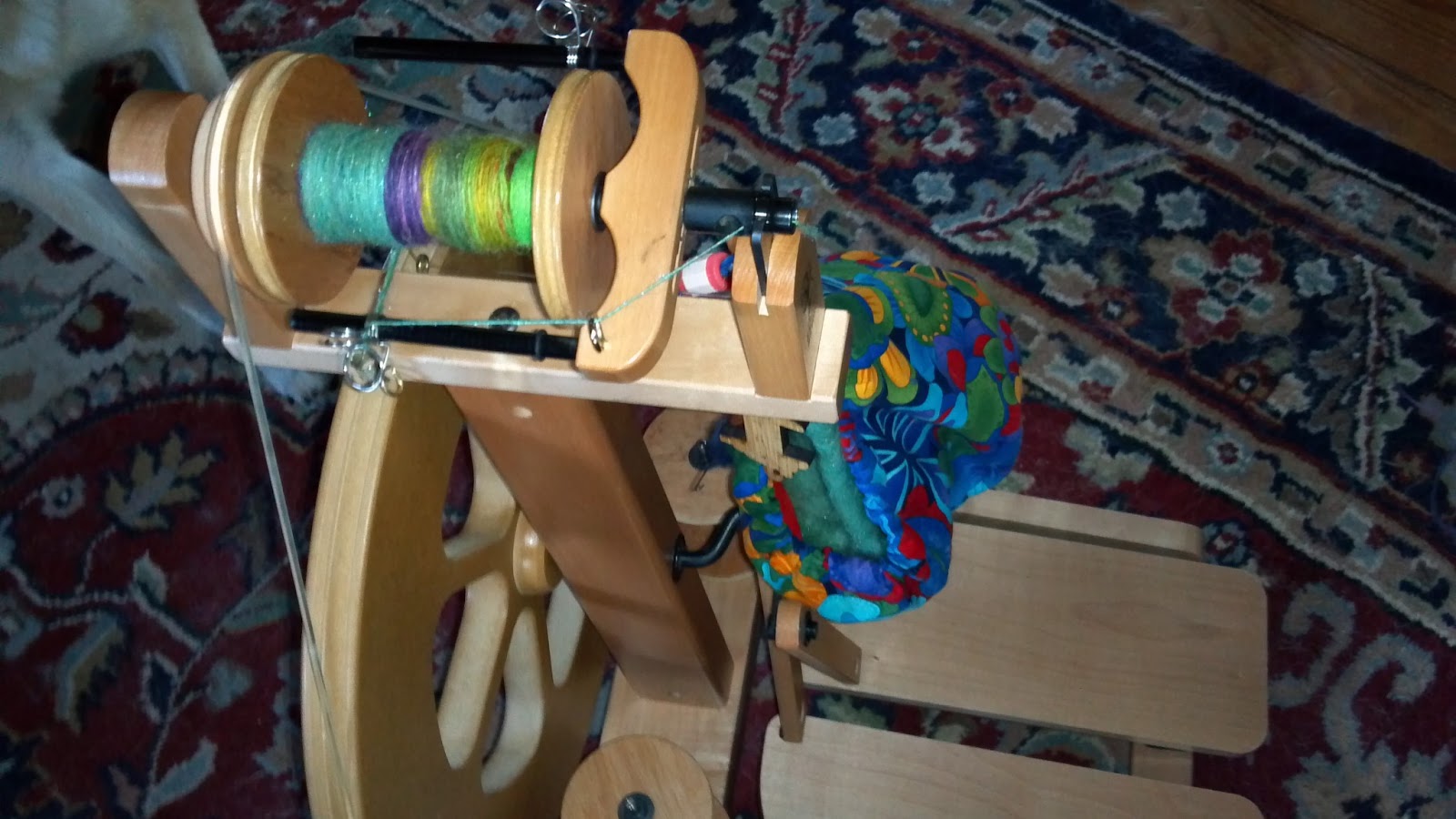 Yesterday, the missing parts ordered for my new wheel arrived and the wheel assembly was finished. Over the year that I have been spinning, I have accumulated a few small bunches of roving of various fiber, some from just not finishing roving I was spinning, some the wee giftees from the friend from whom I purchased my first wheel, and a few left from when I was drop spindle spinning. I pulled out some Merino, an easy to spin fiber and tried out the new wheel.