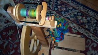 This afternoon has been a fun experiment, using Corriedale in vivid colors, Blue Faced Leicester/Silk blend and pure Alpaca to create a funky bobbin of single that I am going to ply with a neutral and use to knit blanket squares. Maybe someday, there will be a blanket or throw to warm us on a cold evening and it will be made entirely of homespun yarn.I am in love with my new wheel and still adore the spinning process.