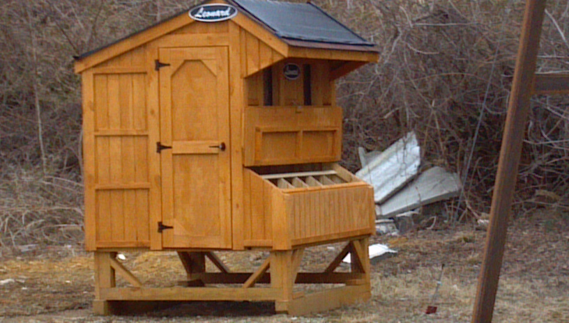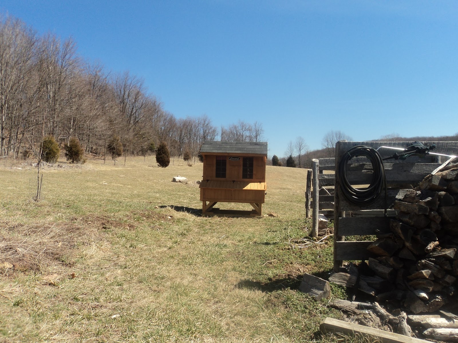 I finally called about the coop (see yesterday’s rant) about 11:30 a.m. and was told the driver had some truck trouble (good excuse) and we were next on the list to be called (funny, we were the first delivery, so why not the first call), and it would be there between 1 and 2 and they would call first. We needed chicken feed, gas for my car, and a couple of supplies for soap and body wash making, so we decided to make a dash to town, grab some lunch and do the quick errands. WRONG. We did get lunch and a call that the truck was on its way. Quick dash back up the mountain, stood out in the frozen yuk, guided the truck to a position where he could get the coop close to where I wanted it and he refused to back the truck off the gravel. The coop was unloaded at least 300 feet from where it shall live. They did show me how to hook the tow straps to pull it, and we hope the tractor can haul it where it needs to go without tipping it over.