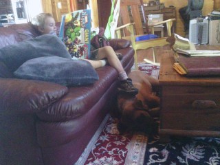 We had a delightful week plus with them, with our 7 year old grandson getting along beautifully with our 5 year old Florida grandson and our 7 month old granddaughter taking only a few minutes to decide that we weren’t strangers and fueling us with smiles, giggles and snuggles constantly. Though their 80 lb Golden did not take well to the 100+ lb Mastiff puppy we brought with us, that too was resolved with a closed door, baby gate, or the use of the wire kennel we toted down with us.