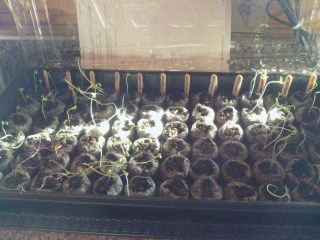 My plant light still has not arrived and the cute little sprouts on Wednesday are now 4 inch long leggy seedling that will not survive, so I guess all of the starts will have to be restarted.