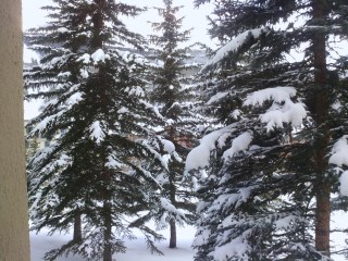 It continued to snow lightly all night and until noon. My hubby and I ventured out early to the rental shop to get our skiis and back in time to head out with his sister to try this moutain out. I have never skiied in deep sticky snow before and it did nothing to instill my confidence in my ability. The first run, we stuck to a green and easy blue slope, venturing to a different blue on the second run. It took us over an hour to get down that time. My very confident skier hubby wasn’t doing so well. We went inside for lunch and decided to call our first day at the halfway point.