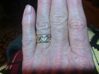 He has never forgotten, surprising me with a dozen or even two dozen roses at school, fancy dinners out with my parents watching our children, later as our kids were older, with Bed and breakfast weekends. A couple of these evenings, have been accompanied with a diamond anniversary ring and another with a heart shaped diamond heart necklace, but the first piece of jewelry, a simple band of gold hearts, placed on my left ring finger in front of our family and friends, 34 years ago today continues to be my favorite.