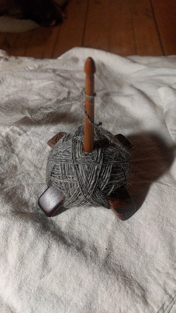 The cop on the Turkish spindle is the yarn that I have spun today when there was time to sit and spin.