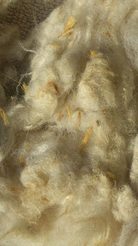 Before I left for the retreat, I realized that a lovely little Jacob raw fleece that I had improperly stored had several moths in it. Hoping to save it, I put it in a black garbage bag and threw it in the deep freezer. This morning, I removed it and hung the black bag in my closed car. It is supposed to get up into the 90’s today which in the superheated car should kill off any eggs that may have been layed. The freezer should have killed any moths and larva. After it has had a couple of days in the car, I will open it and examine it for damage and wash it if I caught it in time to save it.