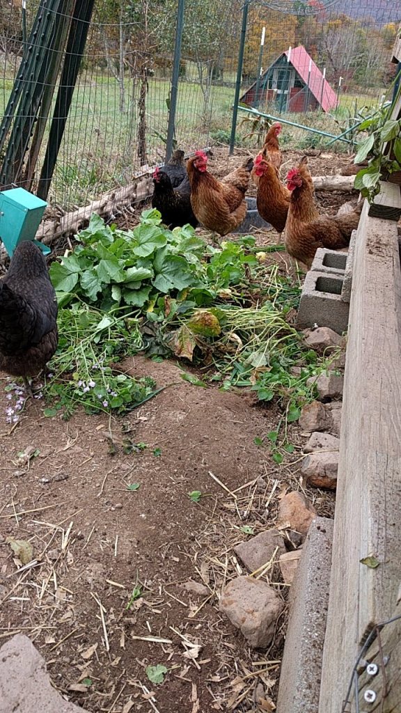 My longterm to do list includes an arbor for the grape vine and a solar dehydrator. Short term, I need to clean up the mess that was my garden this summer. A few handfuls of weeds and spent beans were tossed to the chickens to pick through.
