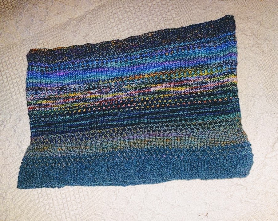 After a lunch out today, a trip to Tractor Supply took care of all those needs and the coop was cleaned, sprayed down inside and refilled with fresh pine chips. Tractor Supply had 6 pounds of Black Oil Sunflower seed for $7, but 40 pounds for $10. Not sure how I would deal with 40 pounds, the bargain was too great. Every extra bucket is filled, along with the bird seed container and the bag still is about 1/3 full. The house was vacuumed, dusted, and the kitchen cleaned. Between jobs and preparing dinner, the fiber that was being spun on the spindle was finished and a few rows knit on the scarf.
