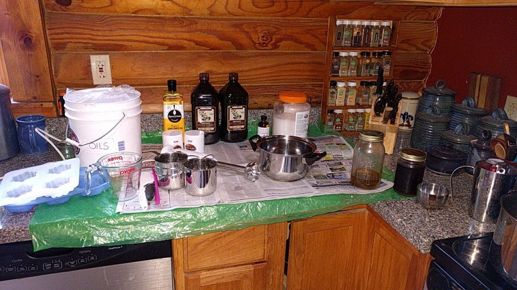 Several years ago, maybe 5, I wanted to learn to make soap. I have a friend that I met through knitting, Cat, and she made soap and had for years. One day while I was in Michael’s Arts and Crafts, I saw soap base, molds, and fragrances and I bought some. The soap base was a melt and pour variety, the fragrances were strong and artificial, not what I wanted as soap.